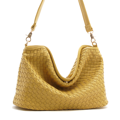 ANNA DOLLY 優雅風貌Genuine編織肩背包(亮麗黃)