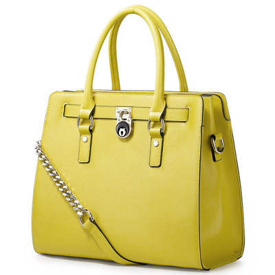 WuMi 無米 真皮維多莉亞鍊帶鎖釦包 萊姆黃