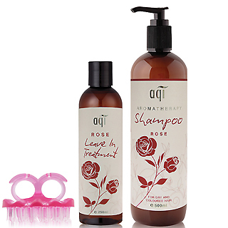 【aqi潔麗雅】大馬士革玫瑰精油修護洗髮護髮組(洗髮500ml+免沖護髮250ml+彈力按摩刷l)