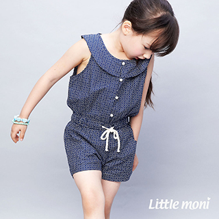【Little moni】熱帶風情幾何連身短褲(靛藍)