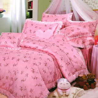 【幸福花園】臺灣製雙人五件式純棉床罩組(粉)