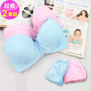 【帚搛式j水漾清新 蕾絲繡邊成套內衣-版型偏小(超值2套組)