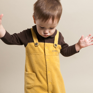 【minihope】男童 帥氣假兩件吊帶連身裝(芥茉/暗藍)