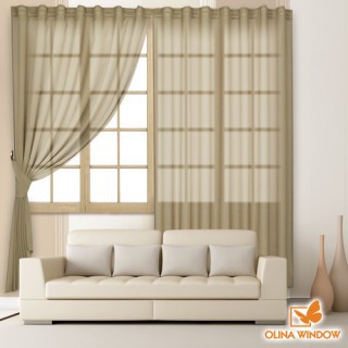 歐麗娜窗飾西廂夜燭系列-山居淺褐輕透薄窗紗W150cmXL210cmX2片