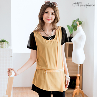 【模兒空間SS】S1003時尚飄逸層次雪紡造型長版上衣(潮流黃)