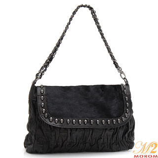 【MOROM】羊皮優質馬毛骷髏鉚釘鍊飾包(黑色)