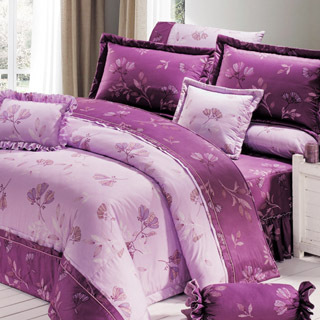 【100??棉】雙人臺灣製六件式床罩組(紫憶璃迷)