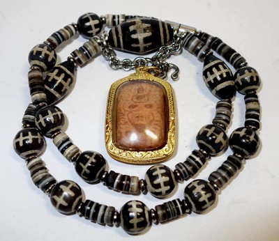 菩多佛教文物-金剛索古珠.藥師片珠佛牌鍊(長度52公分)