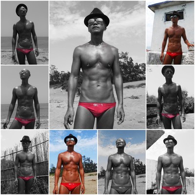 來到沙灘上感覺南風還滿強的,於是就將我的裝備給放到圍牆的北邊這一頭太陽曬得到的這邊啦!要是在冬季的吹東北風的話就得放到另外一面南邊啦!還好剛到白沙灣的時候比較沒什麼人,就讓我可以寬心的拍了三四十張的短褲跟內褲照啦!等到拍得甘願之後大概都半個多小時過去了這才準備換上泳褲啦!哈 ...