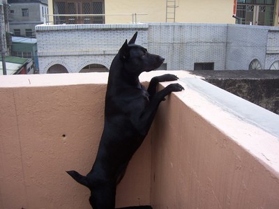 ↑哎呀!太陽好刺眼! 夏季大暑一過真的差好多哪!我還能用「心理測驗」來消暑一下,但是我家黑皮,那一身「不能脫的...