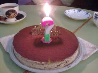 其實羽豔早在星期一就特地去買知名的花蓮提拉米蘇,因為它是羽豔除了薔薇派之外最喜歡光顧的糕點,她想到上次我說沒吃過薔薇派,恰巧小君買了,這次就打定主意買提拉米蘇來給我嚐鮮,而且還是坐公車去,然後中途下車去買,再搭下一班車,這樣舟車勞頓,真不好意思,雖然很感動,但我覺得:這到底是誰過生日呀?不是應該是壽星最大?結果我心裡的感謝詞變成:謝謝、謝謝,辛苦了。和壽星說辛苦了也是頭一遭呀(一般來說是「生日快樂」吧)!