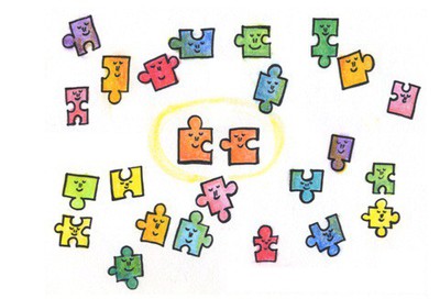 在公司,每個星期五都是快樂的活動日,有著各式各樣的活動,如閱讀短文、生活記事分享、團體心理測驗等等。有次舉行一場拼圖測驗,每一組員都隨機拿一塊拼圖,要在不能說話、不能寫字、不能指或碰到別人的拼圖、不能打暗號甚至不能使眼色的情況下,完成一張完整的拼圖,這真的是高難度呀!比以前給孩子們做的「依生日排序測驗」還難,結果,我們那一組失敗了,因為犯規三次就強制停止。