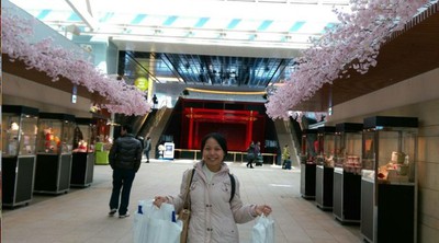 車程約1~2小時,到達終點站,先至二樓將行李托運,再好好逛一下。羽田機場雖然沒成田機場大,但也還滿好逛的,三樓是搭機處,四樓是江戶小路,造景如京都,很漂亮,也可以吃飯和買土產,但我們搭的是中午的班機,索性不吃飯(時間也不夠),便專心買土產。我發現有些土產不用急著在二樓買,四樓可以免稅,種類也有重覆或不同包裝,像我因為先在前一家店買東京BANANA,我是想買一點點就好,只是想吃吃看好不好吃,但最小只有8入,買了之後在下一家才又看到4入的,不過就當多買可以分一些給別人吧!
