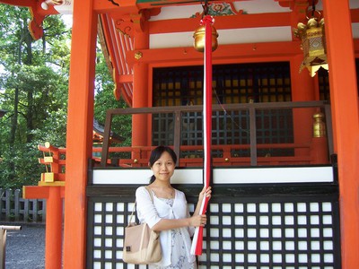 今天更熱了,早上700吃早餐,人很多,幸好我們有點去,我看後面來的人還要排隊入座呢!第一個行程是伏見稻荷大社,人也是非常多,我卻心繫烤鰻魚,雖然順利找到店家,但回程時靠近一瞄,發現老闆還在烤,眼見時間快到了,只好作罷。沒關係,我有查京都、大阪的鰻魚飯的地點,總有一天可以吃到吧!即使如此,我也不是白白到伏見稻荷大社一遭,我把身上唯一的五圓給同事許願(反正以前也在神社許過願了),還幫同事的女兒解籤詩,還是有留下美好的回憶的。