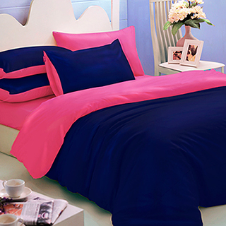 momo網母親節好禮 涼爽床墊 【英國Abelia】《繽紛混搭》單人三件式天使絨被套床包組-深藍-桃紅 運裝精選