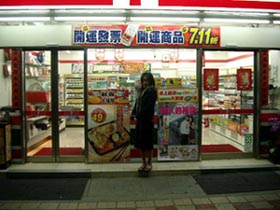 這個怪怪7-11 是我們在烏來街上發現的 通常一家7-11只有一個門 就算有二個門 也不會在同一面上 不知道這家7-11是不是百視達改裝的 還片是一個門 借片是另個門 詭異吧 ...