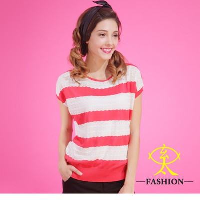 蠻多網友推薦我到MOMO購物網購買 【玄太】海洋風條紋連身袖針織上衣(橘紅)~~(滿額還可以使用折價券)