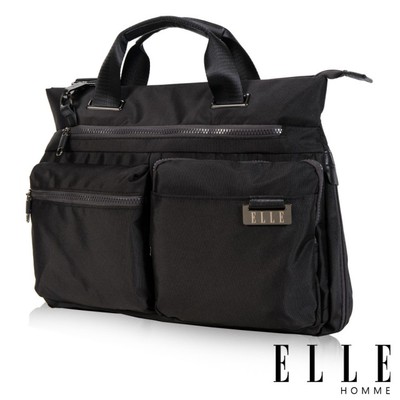 【ELLE HOMME】時尚公事包搭配皮革IPAD-13吋筆電置物層側背手提款(黑EL82303A-02)