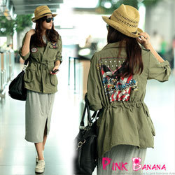 【Pink Banana】拼貼圖軍裝感拉繩外套(共二色) 產品網址 http://tw.partner.buy.yahoo.com/gd/buy?gdid=3742238&mc...