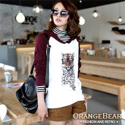 【OB嚴選】老虎拼布長版磨毛連帽T恤‧共二色 產品網址 http://tw.partner.buy.yahoo.com/gd/buy?gdid=3952038&mcode=MV...