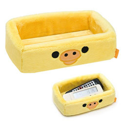 San-X 懶熊臉型毛絨方方收納盒。小雞(黃)