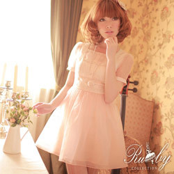 【露比午茶】韓 甜美顯瘦優雅公主蕾絲高腰歐根紗短袖洋裝 甜美性感的洋裝 優雅公主蕾絲高腰 親膚雪紡材質 自然呈現柔軟飄逸