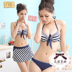 【花漾美姬】盛夏陽光‧簡約條紋三件式鋼圈泳衣(藍)