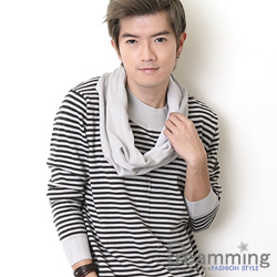 【Dreamming】連綴圍巾條紋長袖針織衫-共二色