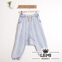 【日本LEMI】古著漂色淡藍刷色寬鬆綁繩飛鼠牛仔褲 可愛飛鼠褲設計