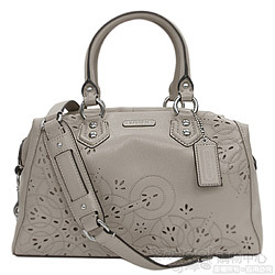 COACH灰卡全皮水滴雕花車縫C Logo手提/側肩背波士頓包(展示品)