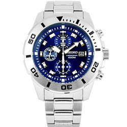 SEIKO 極速傳說三眼計時腕錶-藍面/45mm 光燦時尚魅力設計,讓整體除了不鏽鋼材質之外,更多了一分不同材質的層次表現 三環計時功能對稱排列於面盤,呈現極為豐富的設計感