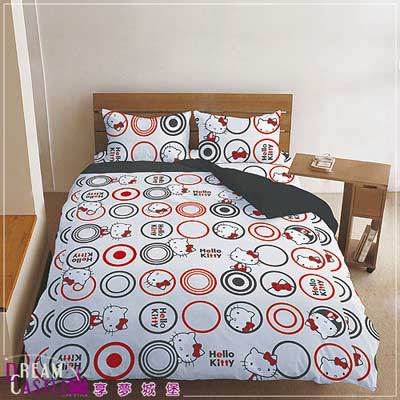 《享夢城堡》HELLO KITTY我愛普普系列-純棉單人三件式床包被套組(黑)