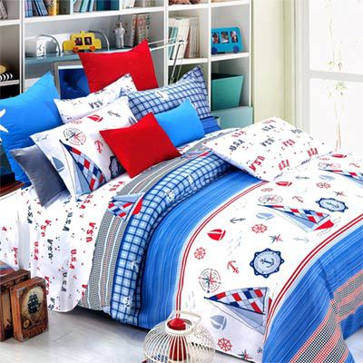 幸運草【夏日海軍風】單人三件式精梳棉被套床包組