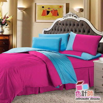 色計師【甜蜜紅+天空藍】100%精梳棉標準雙人6*7被套