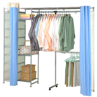 C.可加購防塵布套組,除了前面及側邊原有的水藍色不織布及不織布防塵布遮蔽外,上面及後面均附有不織布防塵布及專用鐵架,讓您的衣服不會有灰塵,衣物防塵力高達99%