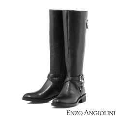 Enzo Angiolini 個性作風摩登型格 交叉皮革條帶釦飾長靴-經典黑