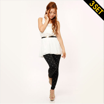 Fashion Cookie-JURIANO JURRIE 緹花背心+內搭+點點褲組(附腰帶) (白) - Fashion Cookie