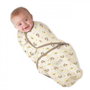 《SwaddleMe 嬰兒包巾》的專利獨特設計不但操作方便,更能紮實的包覆寶寶,讓寶寶猶如在媽媽的子宮內而感到安全感,進而睡得更安全、更沉久;產品可依寶寶的大小調整緊 度,貼心方便的設計更讓媽咪換尿布時不必解開包巾!讓新手爸媽也能迅速的襁褓寶寶,減少因為爸媽的慌張或不紮實的包覆而造成寶寶不舒適及哭鬧。
