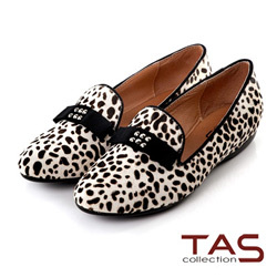 TAS 經典重現 鉚釘蝴蝶結豹紋輕便樂福鞋-注目白
