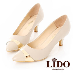 LIDO 紐約時尚金屬拼接風尖頭跟鞋-雅緻裸