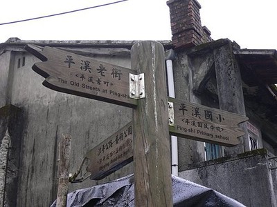 這是平溪老街上的路標,古樸味道十足,不過非常低調,低調到遊客快看不到了。