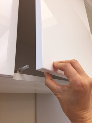 現在越來越多人選擇按壓式門片,安裝俗稱拍拍手的卡扣,只要手輕輕在門板上一壓,櫃門就會自動彈出。