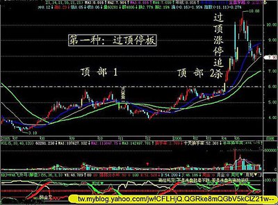 在過頭停板中我認為又可分為過頭停板也就是股價一漲停就沖過了前兩個高點,也是頭部;量過頭停板,也就是說股價已經 漲停,K線未沖過前頭部,但是成交量卻比前高點成交量大,沖擊停板,也就是說股價漲停但仍沒過前同高點,成交量也未超過前高點的量,從成交量上分析,呈逐漸的萎縮說明是莊家洗盤,從半年的換手率看換手也比較高,更加判定了莊家或主力的洗盤,漲停也說明洗盤結束,一波昇勢展開可積極跟進。.