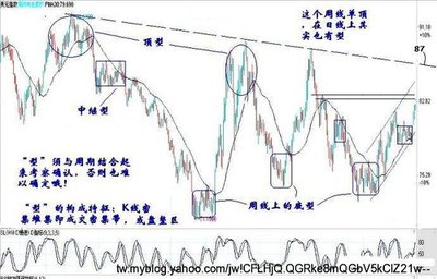 任何頂部底部或中繼都是存在一個過程,即不是一個點,而是一個面,也就是構型的一個過程,過程即時間因素,也就是說,連續的K線本身呈現時間,所構築的型就是時間本身的可視化呈現。把「型」提到概念乃至思維的高度,這純粹是為操作出手而言,即除了比較僵硬的週期考量外,價格的空間型構也應作為重要的考量,而且是作為出手不出手的最小單元考量。此處的「型」,包括各種廣為人知的形態,如W形態,M形態,頭肩形態,穹窿形態,圓底,平底,旗形等等。為了區別而不至於完全混同於形態學術語,我把「型」對應於英語中的「Formation」,有堆集,構成,形成,成型的動態過程的意思,而不是」Patterns」(模式,形態),或者「FRACTAL」(分形,以自相似性為主要特徵).因為形態學中那些構形往往可以很大,而「型」無需那麼大,可以小到10個交易日左右構成的型。也不想再用」分形或分型的概念,那容易把人引導到自相似性的方向去。