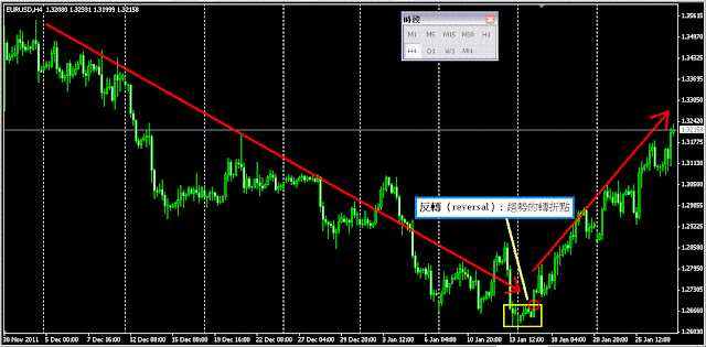 附註:有些國外教學亦會將趨勢反轉(reversal視為是一種重要樣態反轉(reversal): 趨勢末了或衰竭後的重要轉折點
