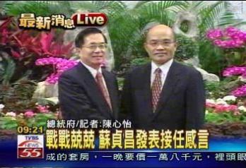 阿扁總統幾乎是樂開懷的宣布了蘇貞昌將擔任新的行政院長. 我猜想阿扁會笑.大概是總算找到還算合適又願意接下這個擔子的人了. 他對蘇貞昌的禮遇.從蘇每天去探病的交通工具就可以看出端倪. 之前每天搭計...