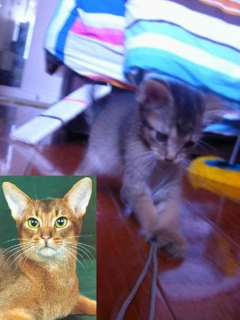 他的貓,一隻短毛貓。 他喜歡他十分發達的肌肉線條, 纖細、又有彈性。 橙褐底色加上深褐色的毛皮, 目光中有著從樹林裡灑下金黃光采。 他年紀還小,活潑好動的愛跳芭蕾, 喜歡依偎著他買...