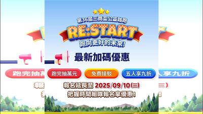 此外,「第36屆三商盃公益路跑」現場也設有豐富的周邊活動,包括鐳射槍對戰、實境解謎、闖關遊戲等,適合親子、好友同樂;另為呼應永續主題,大會更與「樹人減碳生活市集」合作,讓跑者在補充能量的同時,還能響應環保,歡迎大家一起揪團享報名優惠、抽萬元獎金還可以拿豐富完賽好禮包!參與這場結合運動、公益與永續理念的年度盛事,一起「跑向更好的未來」!