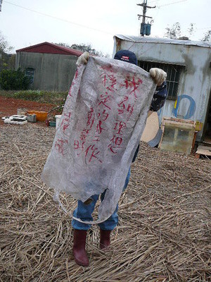 小葉在廣場下的溝邊撿到一個天燈,像小孩一樣舞弄了半天,我忍不住問他︰「有沒有許願人的名字啊...