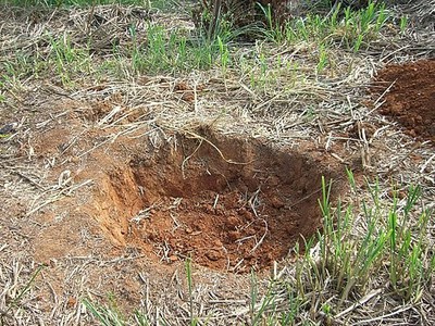 貓爸大約挖了一個20公分深,30公分直徑的小坑,時間已四點了,「可以了嗎?池塘不是要讓怪手來挖嗎?」「是是是!收工了,聽說你今晚學校要考試呢,我們趕緊收工吧。」貓爸晚上還在上學進修呢。